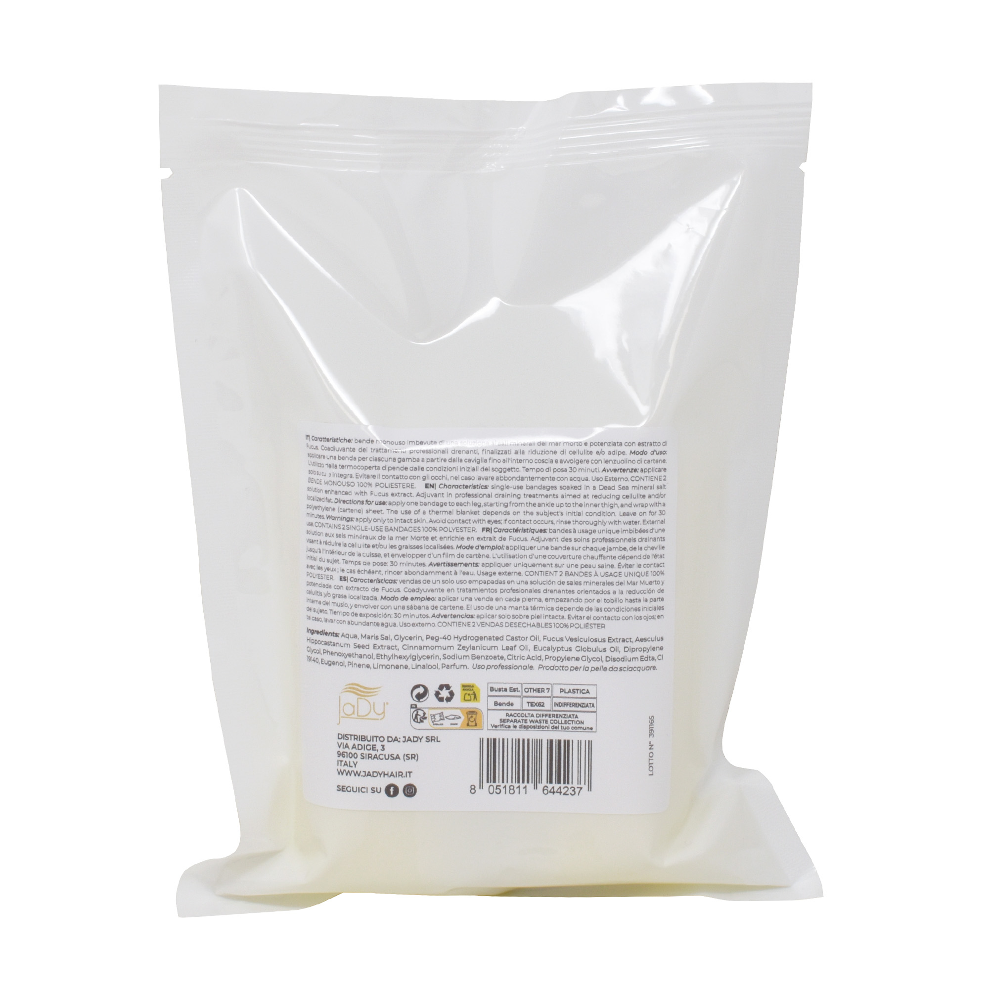 Perfetto sia per centri estetici e professionisti del settore beauty, sia per trattamenti corpo da effettuare comodamente a casa, il bendaggio drenante JaDy rappresenta una soluzione efficace per chi desidera un trattamento intensivo snellente e drenante.