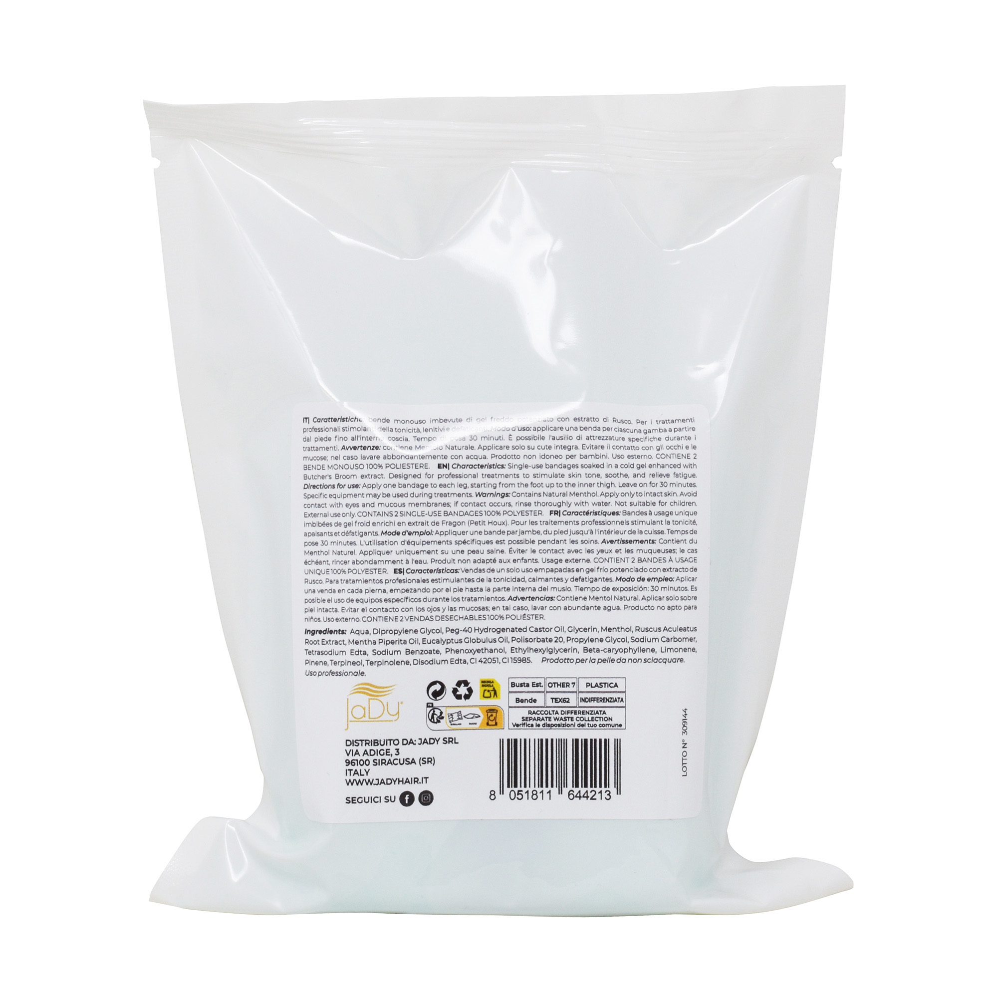 Il bendaggio JaDy è perfetto per centri estetici, SPA e professionisti del settore beauty, ma può essere utilizzato anche per trattamenti corpo domiciliari per migliorare visibilmente la qualità della pelle e favorire un effetto tonificante progressivo.