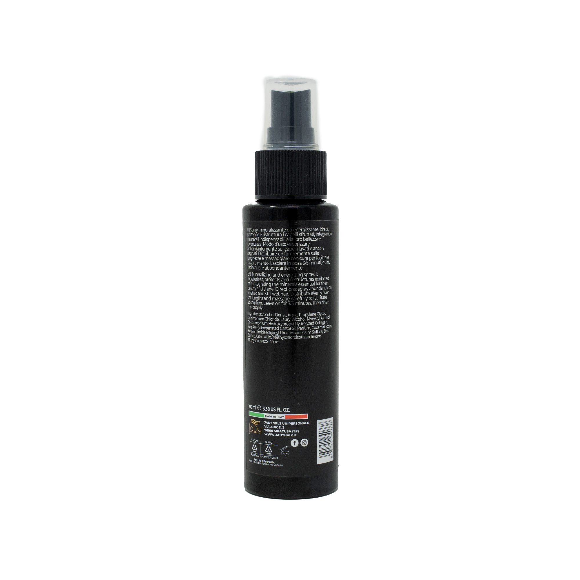 Spray mineralizzante per capelli sfibrati.Spray mineralizzante ed energizzante. Idrata, proteggee ristruttura i capelli sfruttati, integrando i mineraliindispensabili alla loro bellezza e lucentezza.Modo d’uso: vaporizzare abbondantemente sui capellilavati e ancora bagnati. Distribuire uniformementesulle lunghezze e massaggiare con cura per facilitarel’assorbimento. Lasciare in posa 3/5 minuti, quindirisciacquare abbondantemente.